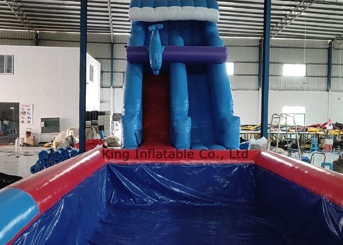 PVC 방수 시트 부풀게할 수 있는 깊이인 거대한 빠른 0.55 밀리미터와 돌고래 슬라이드와 얕은 물 수영장
